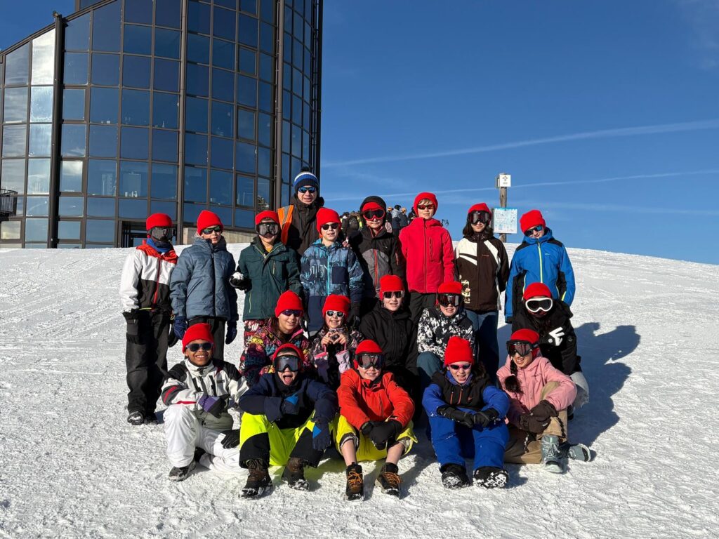 Dag twee van de sneeuwklassen startte met een stevig ontbijt. Daarna vertrokken we met de eitjeslift naar de Berneuse. Wie ons graag wil zien op de webcam kan terecht op https://tlml.roundshot.com/#/ en de tijd instellen op 10u20; onze rode mutsen zijn goed zichtbaar.